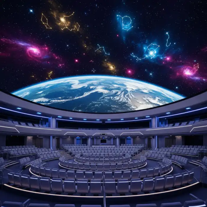 - Planetarium oferuje zaawansowane projekcje sferyczne, które realistycznie symulują podróż przez kosmos.